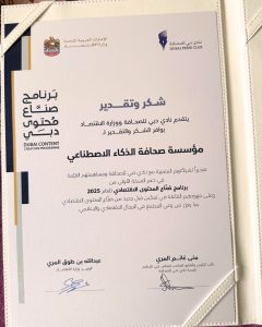 الرئيسية المؤشر العالمي لصحافة الذكاء الاصطناعيتكريم مؤسسة صحافة الذكاء الاصطناعي في قمة الإعلام العربي 2025