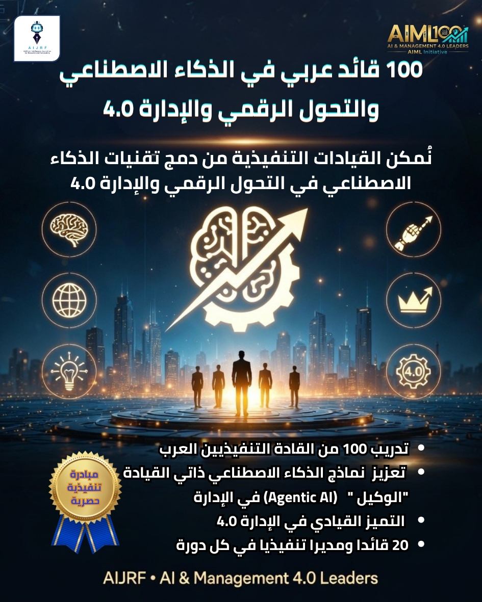 Home 100 قائد عربي في الذكاء الاصطناعي والتحول الرقميمؤسسة AIJRF تُطلق مبادرة (AIML): 100 قائد عربي في الذكاء الاصطناعي والتحول الرقمي والإدارة 4.0
