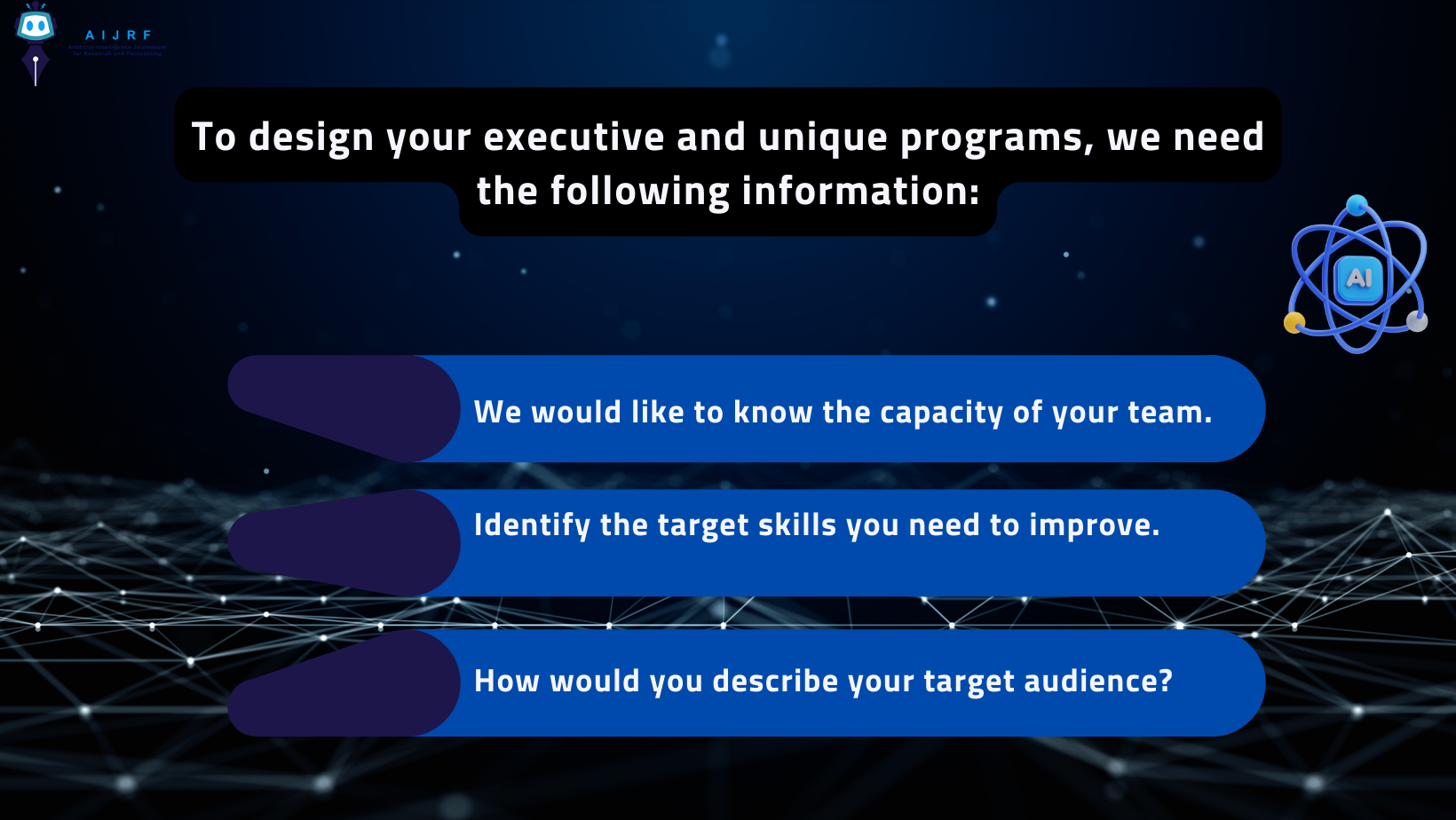 by AIJ Varit Bookmark أسس بناء البرامج التعليمية الأكاديمية ودمج أدوات وتقنيات الذكاء الاصطناعي (FAPAI) Bookmark جامعة دبي ومؤسسة AIJRF يُطلقان النسخة السادسة من المنتدى العالمي لصحافة الذكاء... Bookmark دبلوم الذكاء الاصطناعي وصناعة المحتوى القصصي التفاعلي للأطفال (AISCC) Bookmark الدبلوم المهني: صحافة الذكاء الاصطناعي AIJD Bookmark مؤسسة صحافة الذكاء الاصطناعي ومعهد اليوم للتدريب يُنفذان 3 برامج تدريبية تطبيقية... Bookmark مؤسسة ( AIJRF ) : 20 مبادرة عالمية وأكثر من 120 برنامج... Bookmark الولايات المتحدة تطلق العنان للذكاء الاصطناعي Bookmark الرئيس التنفيذي لـ AIJRF : نمو استثمارات الذكاء الاصطناعي خليجا إلى أكثر... Bookmark الرئيس التنفيذي لمؤسسة AIJRF: التشريعات الديناميكية والمنظومة الابتكارية تقود نمو الذكاء الاصطناعي... Bookmark مؤسسة صحافة الذكاء الاصطناعي شريك في برنامج “صُنّاع المحتوى الصحي والعلمي” الثورة الصناعية الرابعة Bookmark أسس بناء البرامج التعليمية الأكاديمية ودمج أدوات وتقنيات الذكاء الاصطناعي (FAPAI) by Mohamedai2020 by Mohamedai2020 Bookmark مؤسسة صحافة الذكاء الاصطناعي ومعهد اليوم للتدريب يُنفذان 3 برامج تدريبية تطبيقية في الذكاء الاصطناعي by Mohamedai2020 Bookmark الولايات المتحدة تطلق العنان للذكاء الاصطناعي by Abass Bookmark الرئيس التنفيذي لـ AIJRF : نمو استثمارات الذكاء الاصطناعي خليجا إلى أكثر من 250 مليار دولار حتى 2035 by Mohamedai2020 دراسات وأبحاث Bookmark أسس بناء البرامج التعليمية الأكاديمية ودمج أدوات وتقنيات الذكاء الاصطناعي (FAPAI) by Mohamedai2020 by Mohamedai2020 Bookmark دبلوم الذكاء الاصطناعي وصناعة المحتوى القصصي التفاعلي للأطفال (AISCC) by Mohamedai2020 by Mohamedai2020 Bookmark مؤسسة ( AIJRF ) : 20 مبادرة عالمية وأكثر من 120 برنامج تدريبي وتعاون مع 30 مؤسسة تعليمية وتطبيقية عالمية ومحلية خلال 7 سنوات by Mohamedai2020 Bookmark الولايات المتحدة تطلق العنان للذكاء الاصطناعي by Abass تواصل معنا Facebook Twitter Instagram Linkedin Youtube أهم الموضوعات Bookmark أسس بناء البرامج التعليمية الأكاديمية ودمج أدوات وتقنيات الذكاء الاصطناعي (FAPAI) Bookmark جامعة دبي ومؤسسة AIJRF يُطلقان النسخة السادسة من المنتدى العالمي لصحافة الذكاء الاصطناعي في أبريل 2026 Bookmark دبلوم الذكاء الاصطناعي وصناعة المحتوى القصصي التفاعلي للأطفال (AISCC) Bookmark الدبلوم المهني: صحافة الذكاء الاصطناعي AIJD تطبيقات الذكاء الاصطناعي Bookmark دبلوم الذكاء الاصطناعي وصناعة المحتوى القصصي التفاعلي للأطفال (AISCC) by Mohamedai2020 by Mohamedai2020 Bookmark مؤسسة صحافة الذكاء الاصطناعي ومعهد اليوم للتدريب يُنفذان 3 برامج تدريبية تطبيقية في الذكاء الاصطناعي by Mohamedai2020 Bookmark الولايات المتحدة تطلق العنان للذكاء الاصطناعي by Abass أحداث ومؤتمرات Bookmark الولايات المتحدة تطلق العنان للذكاء الاصطناعي by Abass by Abass Bookmark الجامعة الأميركية في الشارقة تستضيف النسخة الخامسة من المنتدى العالمي لصحافة الذكاء الاصطناعي 2025 by Mohamedai2020 Bookmark مؤسسة AIJRF شريك رئيسي للمنتدى الدولي للاتصال الحكومي في عدة فعاليات by eldmrani احصل على نسختك! تواصل معنا الآن! مهن المستقبل Bookmark مؤسسة صحافة الذكاء الاصطناعي تفتح الباب لعضوية المنتسبين للباحثين والإعلاميين by Mohamedai2020 Bookmark أطلق العنان لمستقبلك مع منح فولبرايت لسنة 2025-2024 by Abass Bookmark مؤسسة صحافة الذكاء الاصطناعي تُشارك في ندوة حول الذكاء الاصطناعي والإعلام by Mohamedai2020 Bookmark سيمنار شهري لمناقشة البحوث والأطروحات العلمية في مجال الإعلام والذكاء الاصطناعي by Mohamedai2020 Bookmark ورشتي عمل في استخدام تقنيات صحافة الذكاء الاصطناعي بالتعاون مع قناة العربية ومجموعة نرويجية متخصصة by Mohamedai2020 الأقسام الذكاء الاصطناعي الثورة الصناعية الرابعة تطبيقات الذكاء الاصطناعي تقارير ومتابعات صحافة الذكاء الاصطناعي دراسات وأبحاث آخر الموضوعات Bookmark دورة تدريبية حول مفهوم وأدوات صحافة الذكاء الاصطناعي by Mohamedai2020 by Mohamedai2020 Read more Bookmark أول سفينة روبوتية بالذكاء الاصطناعي تبحر في الأطلسي... by asmaa by asmaa Read more Bookmark آبل ترجئ 